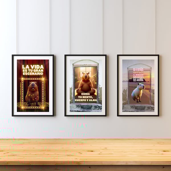 Set de 3 Pósters Digitales – Capibaras con Mensaje
