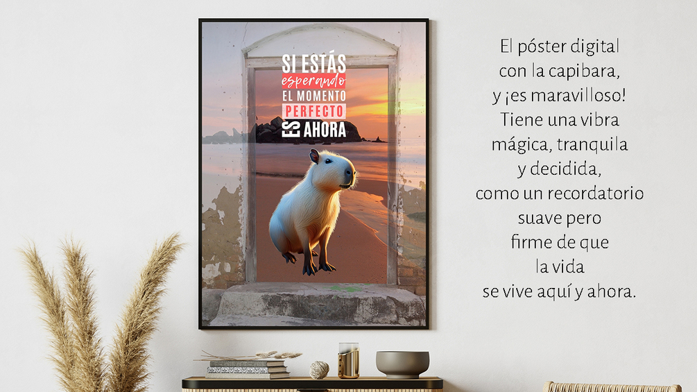 Póster Digital Motivacional con Capibara: “El momento perfecto es ahora”